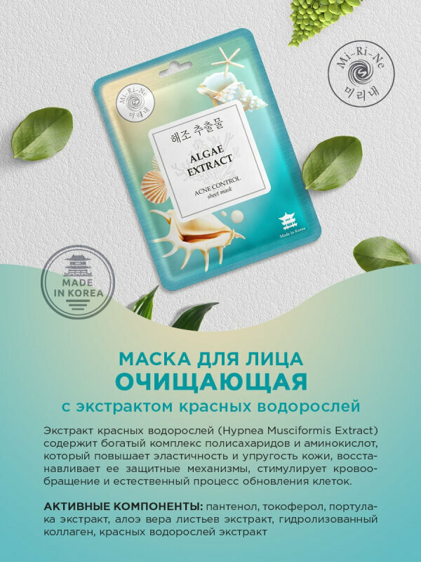 Маска тканевая для лица Mi-Ri-Ne Algae Extract с экстрактом красных водорослей 23г