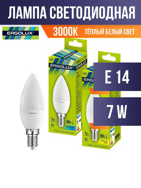 - Лампа светодиодная Ergolux LED-C35-7W-E14-3K, теплый свет, 7 Вт