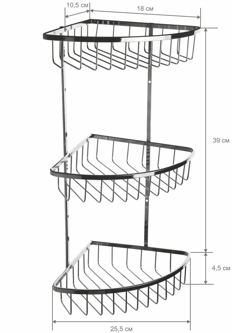 Настенная металлическая полка из нержавеющей стали, 3-х ярусная. Монтируется к стене при помощи крепления, входящего в комплект.