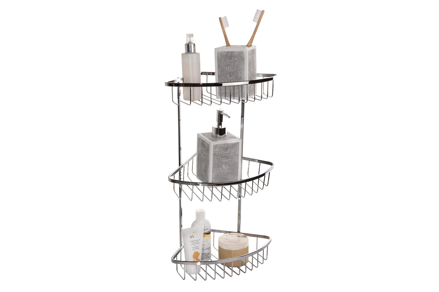 - Полка для ванной KhromHome из стали, Хром, Три яруса, 20х20х63см
