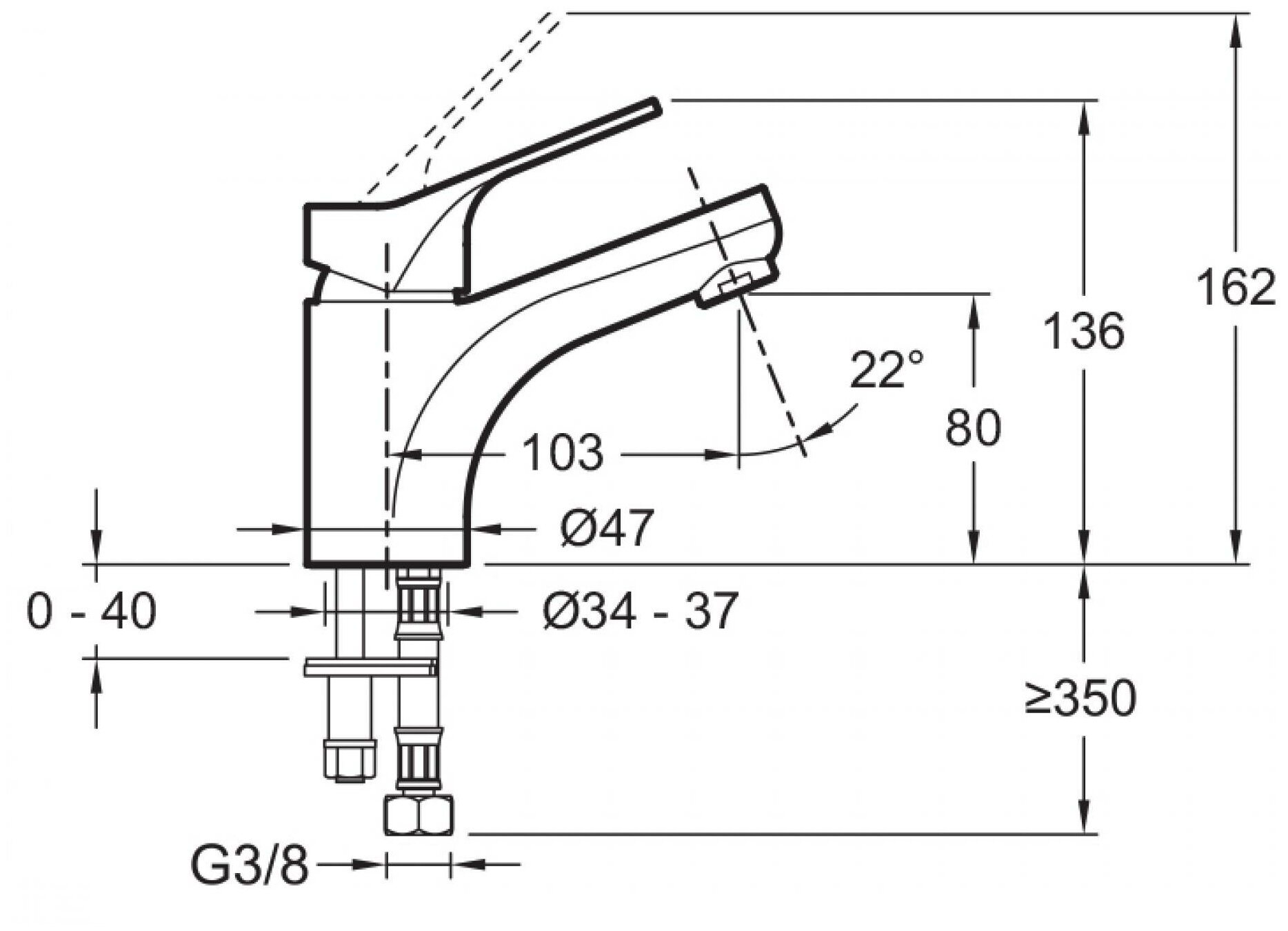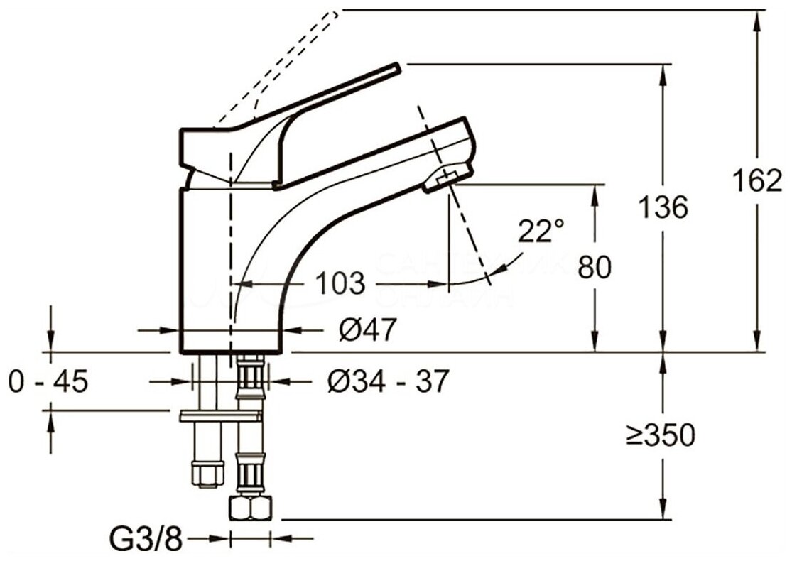 | Диаметр отверстия в раковине | 34-37 |