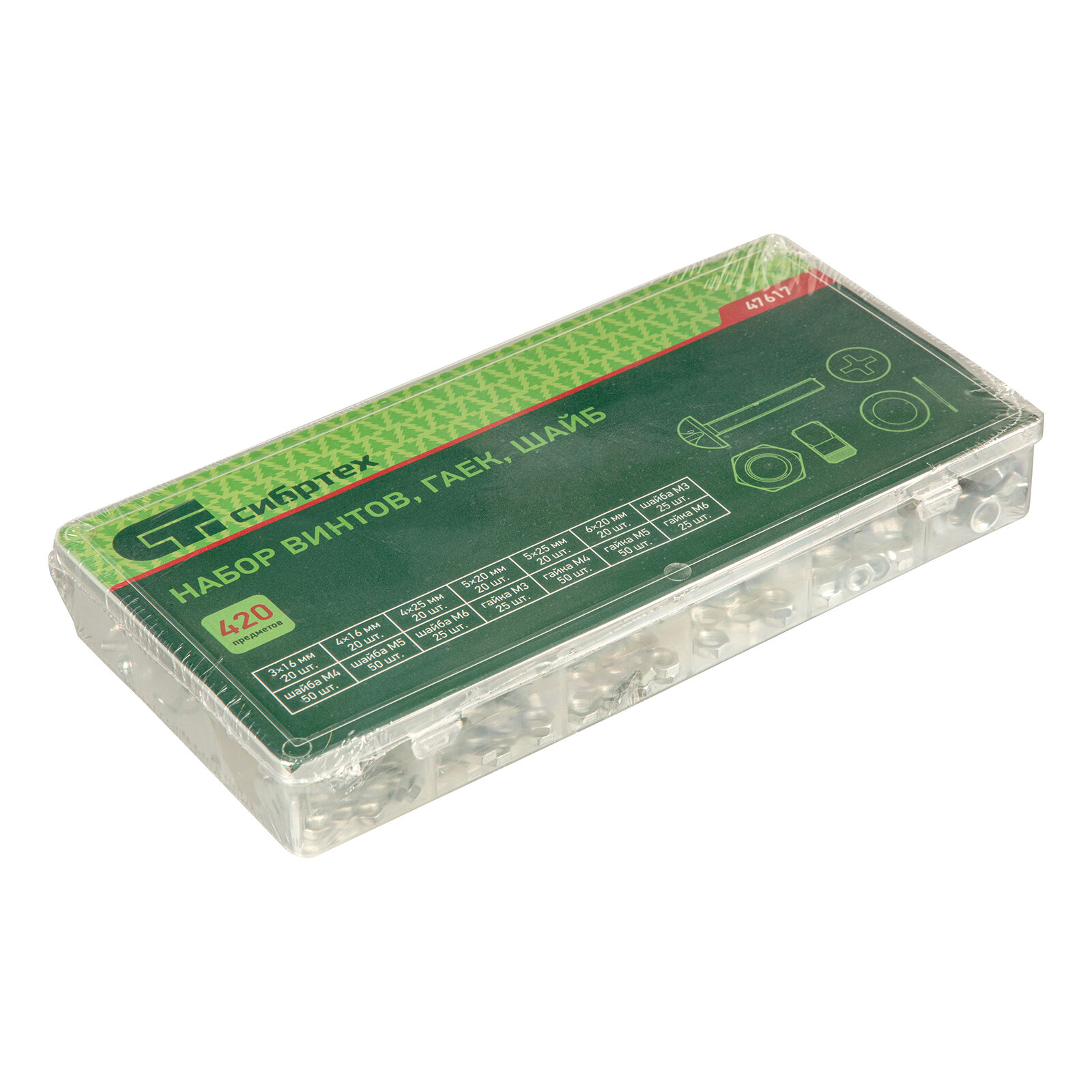 - 420 предметов крепежа всех самых популярных размеров для использования в быту.