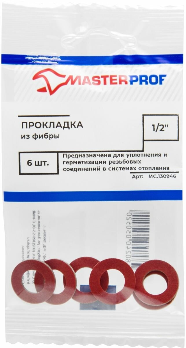 Набор прокладок 1/2" MasterProf ФИБРА 6шт ИС.130946 (размер: 1/2 дюйма)
