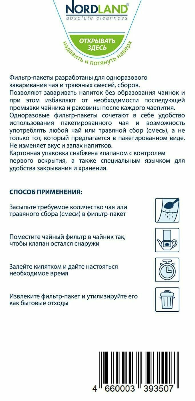 На сегодняшний день товар «Фильтр-пакеты Nordland для заваривания чая и травяных смесей в чайнике 80шт. (393507)» можно купить с кешбеком в 1 магазине: МаксидоМ
