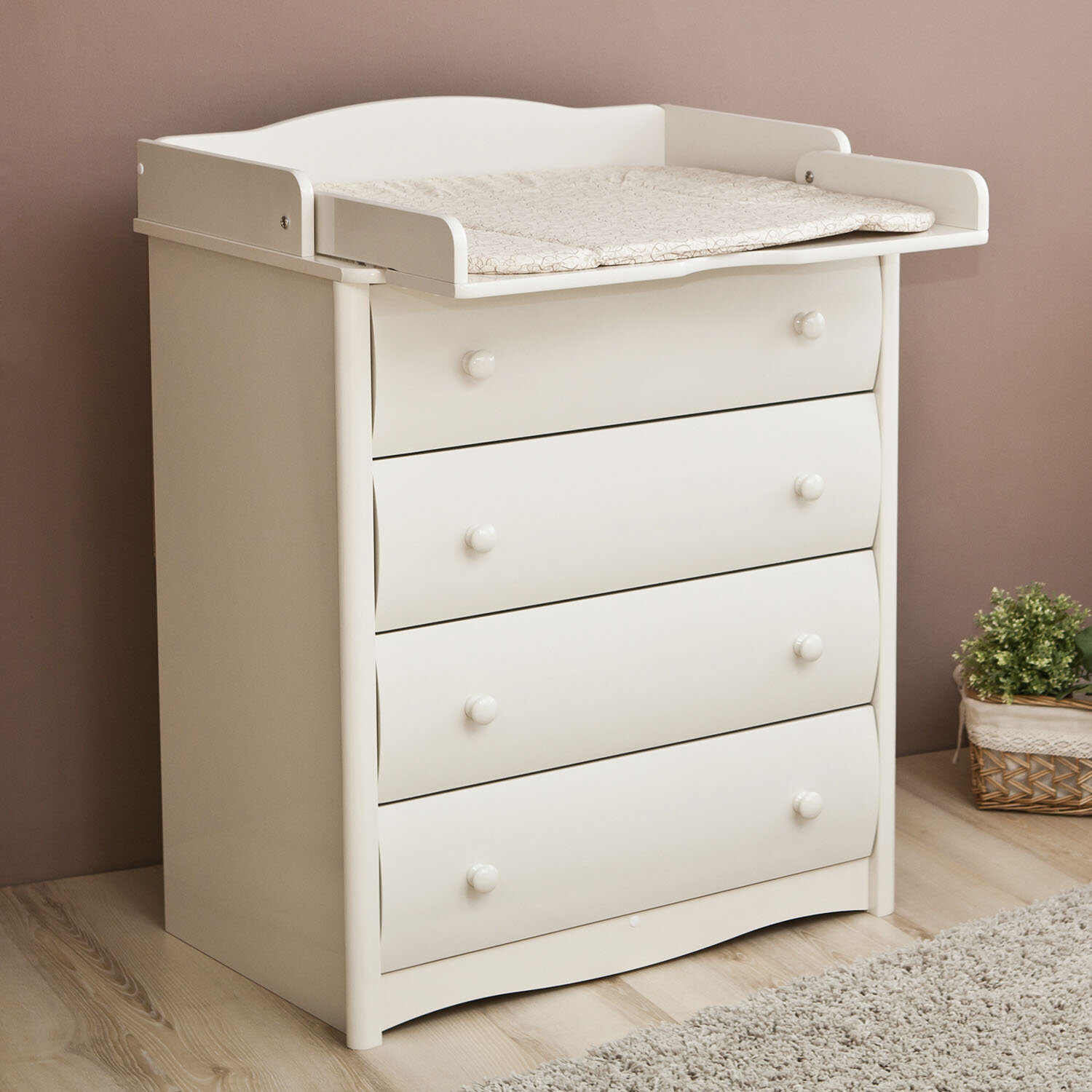 Широкая верхняя доска комода оснащена откидной полкой, что обеспечивает удобное и безопасное пеленание малыша. На пеленальном столике комода (размер столика 70х66 см) удобно делать массаж, переодевать ребёнка, проводить ежедневные гигиенические процедуры. Кроме того, всегда под рукой н