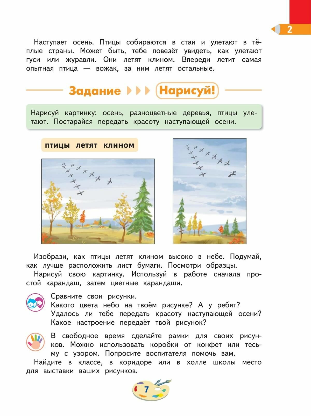Содержание учебника способствует дальнейшему формированию у детей основ их изобразительной деятельности; дети учатся видеть красоту и гармонию, подмечать закономерное и особенное в объектах и явлениях окружающего мира, анализировать форму и строение, чувствовать пропорции и симметрию, изображать объекты в движении, передавать внешность человека понимать и передавать его эмоциональное состояние. Навыки применения разных техник работы с красками и бумагой, использования цветных и ахроматических художественных материалов придадут выразительности детским творческим работам. Расширение знаний о творчестве известных художников и народных мастеров, об окружающем природном мире и обществе, о материалах и инструментах в изобразительной деятельности позволит детям глубже воспринимать произведения искусства, а также делиться собственными впечатлениями и переживаниями в общении с окружающими сверстниками и взрослыми.