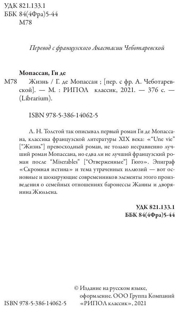 Книга: Жизнь (Мопассан Ги де); РИПОЛ классик Группа Компаний ООО, 2021
