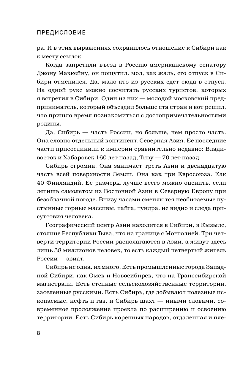 Всегда было интересно, зачем иностранцы приезжают к нам, а особенно в такие отдаленные места, как Сибирь или Якутия. Но Юсси Конттинену удалось не только ответить на этот вопрос, но и пробудить желание во мне съездить туда. Всегда любопытно узнать, как иностранцы видят Россию, а то обычно только и слышишь шутки про медведей и водку. На самом деле такие книги надо показывать часто, особенно иностранцем, но думаю и жителям России, особенно таких городов как Москва или Питер стоит почитать ее