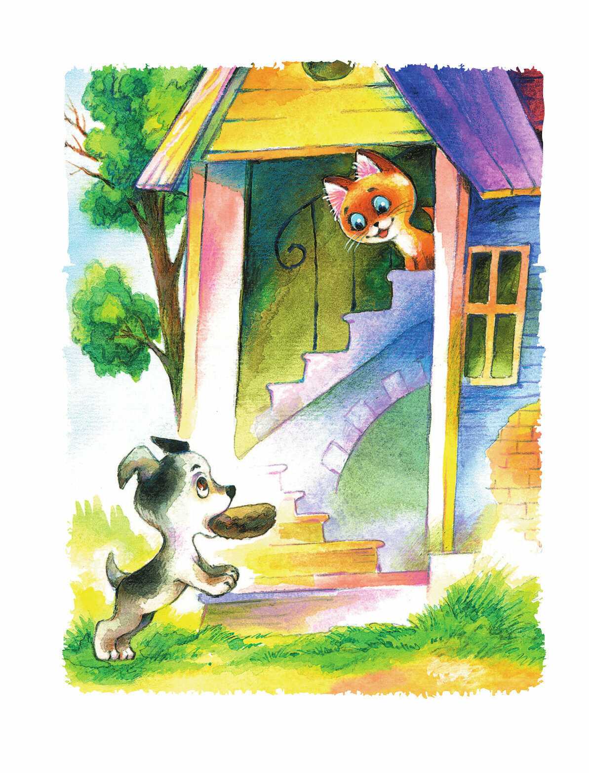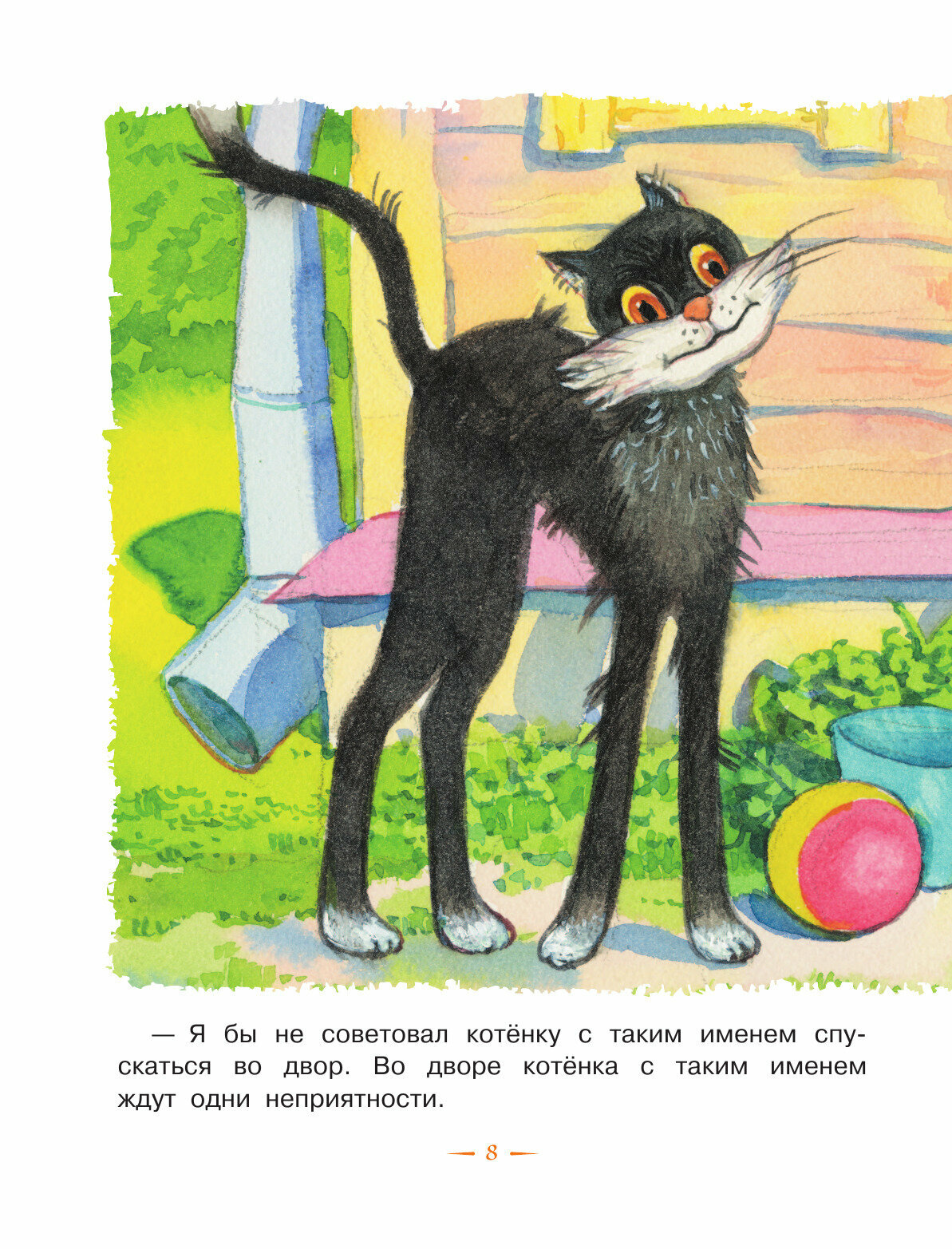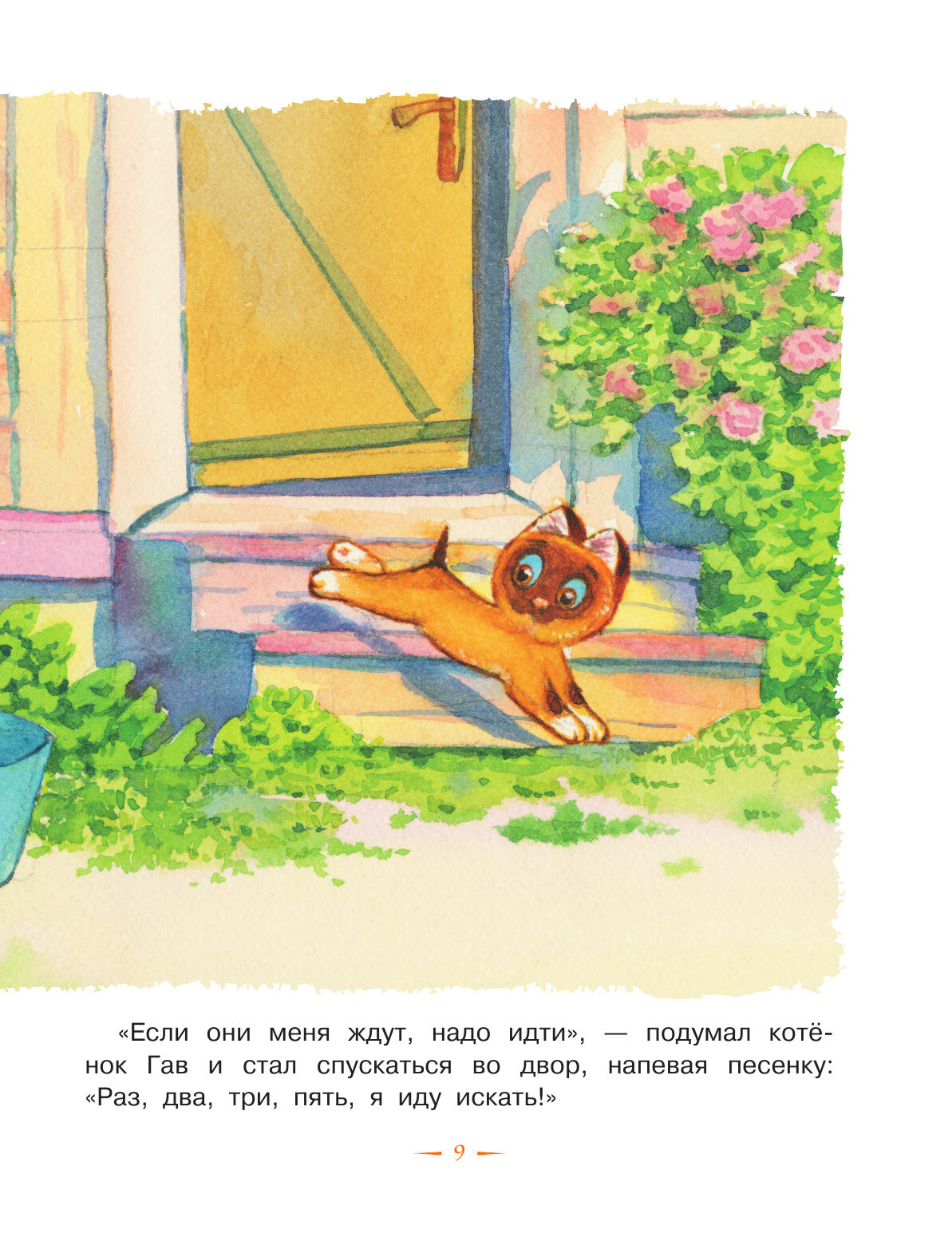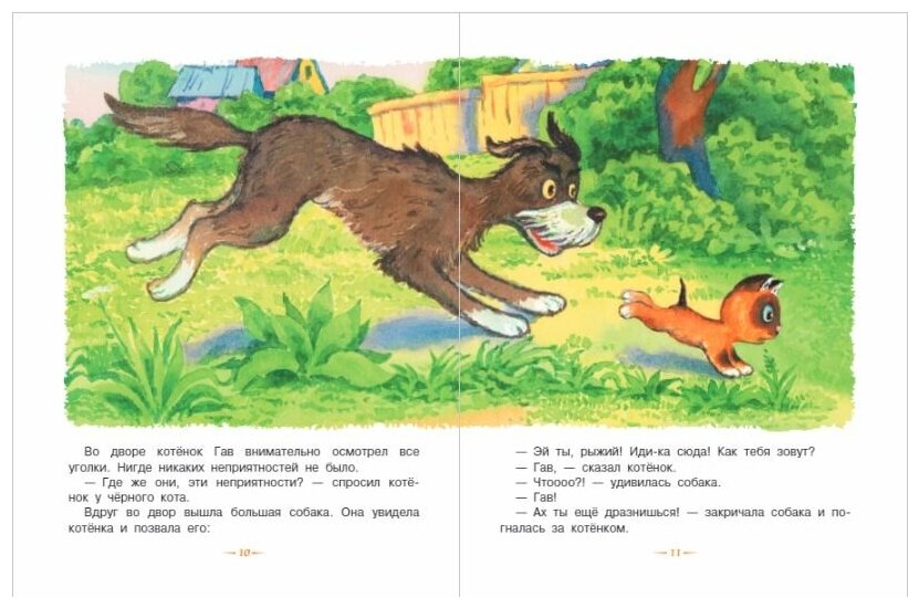 Истории про котёнка Гава и щенка очень пришлись по душе нашим сыновьям 3,5 и 2 года, особенно история про эхо, когда котёнок и щенок кричат в водосточную трубу: "антрекот", и из трубы вылетает кот - такой восторг, 10 раз её просят перечитывать и орут " кооот!!! " В книге не один иллюстратор, мне иногда было сложновато переключаться с одной манеры рисования на другую, но дети ничего не заметили. Истории коротенькие, в основном весь лист занимают иллюстрации. В книге есть ещё несколько историй не про Гава. История про мартышек длинновата в сравнении с остальными, для детей постарше, но в 3,5 можно в принципе читать