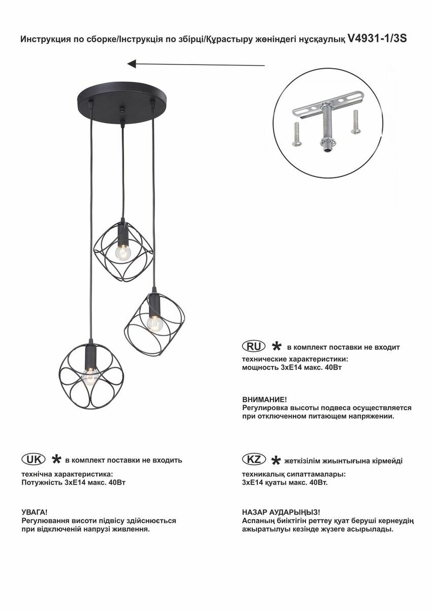 Подвес V4931-1/3S из серии «V4931» от производителя Vitaluce (Россия). Дизайн-стиль лофт. Отлично подойдет для такого типа помещений, как прихожая, кухня. Цвет товара черный. Используемые материалы: металл. С учетом технических характеристик мощности хватит для освещения 9 м2. Способ крепления: монтажная пластина. Дизайн и форма плафона многогранный. Направление плафонов вниз. Цоколь E14. Вид ламп: накаливания. Количество ламп 3 шт. Мощность одной лампы составляет 40 Вт. Общая мощность 120 Вт. Напряжение 220 Вольт. Уровень защищенности от влаги и пыли IP21. Расширенная гарантия на товар 2 года. Высота 420 мм. Диаметр 880 мм. Вес товара 1.3 кг. Комплектация: Подвес. Инструкция по сборке/использованию. Детали, необходимые для сборки товара.Товар упакован в картонную коробку. В случае доставки транспортными службами или маркетплейсом добавляются дополнительные элементы упаковки для защиты от повреждений при транспортировке - усиление картоном, внутренний наполнитель, стрейч-пленка.