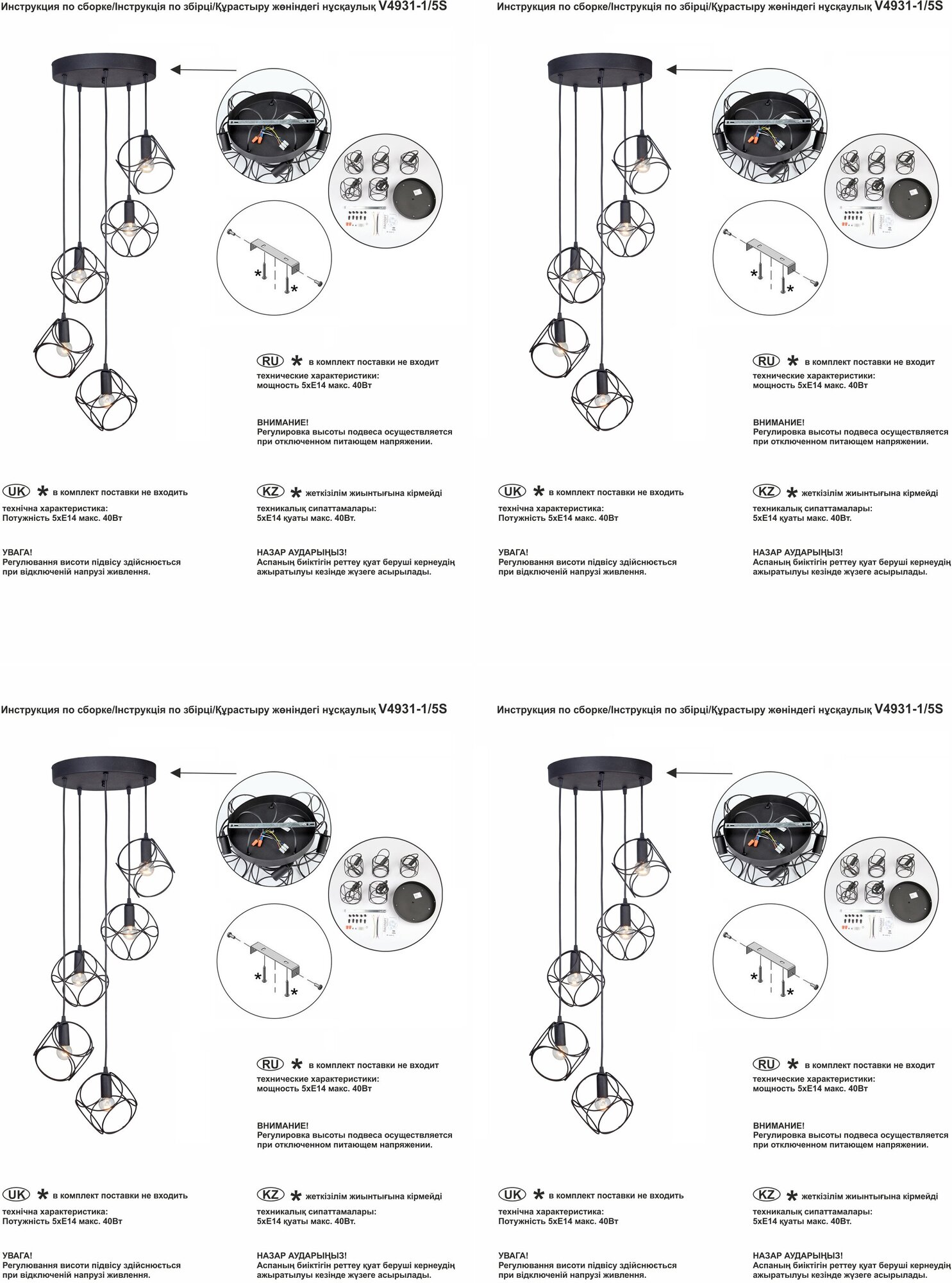 Подвес V4931-1/5S из серии «V4931» от производителя Vitaluce (Россия). Дизайн-стиль лофт. Отлично подойдет для такого типа помещений, как прихожая, кухня. Цвет товара черный. Используемые материалы: металл. С учетом технических характеристик мощности хватит для освещения 15 м2. Способ крепления: монтажная пластина. Дизайн и форма плафона многогранный. Направление плафонов вниз. Цоколь E14. Вид ламп: накаливания. Количество ламп 5 шт. Мощность одной лампы составляет 40 Вт. Общая мощность 200 Вт. Напряжение 220 Вольт. Уровень защищенности от влаги и пыли IP21. Расширенная гарантия на товар 2 года. Высота 1360 мм. Диаметр 670 мм. Вес товара 2 кг. Комплектация: Подвес. Инструкция по сборке/использованию. Детали, необходимые для сборки товара.Товар упакован в картонную коробку. В случае доставки транспортными службами или маркетплейсом добавляются дополнительные элементы упаковки для защиты от повреждений при транспортировке - усиление картоном, внутренний наполнитель, стрейч-пленка.