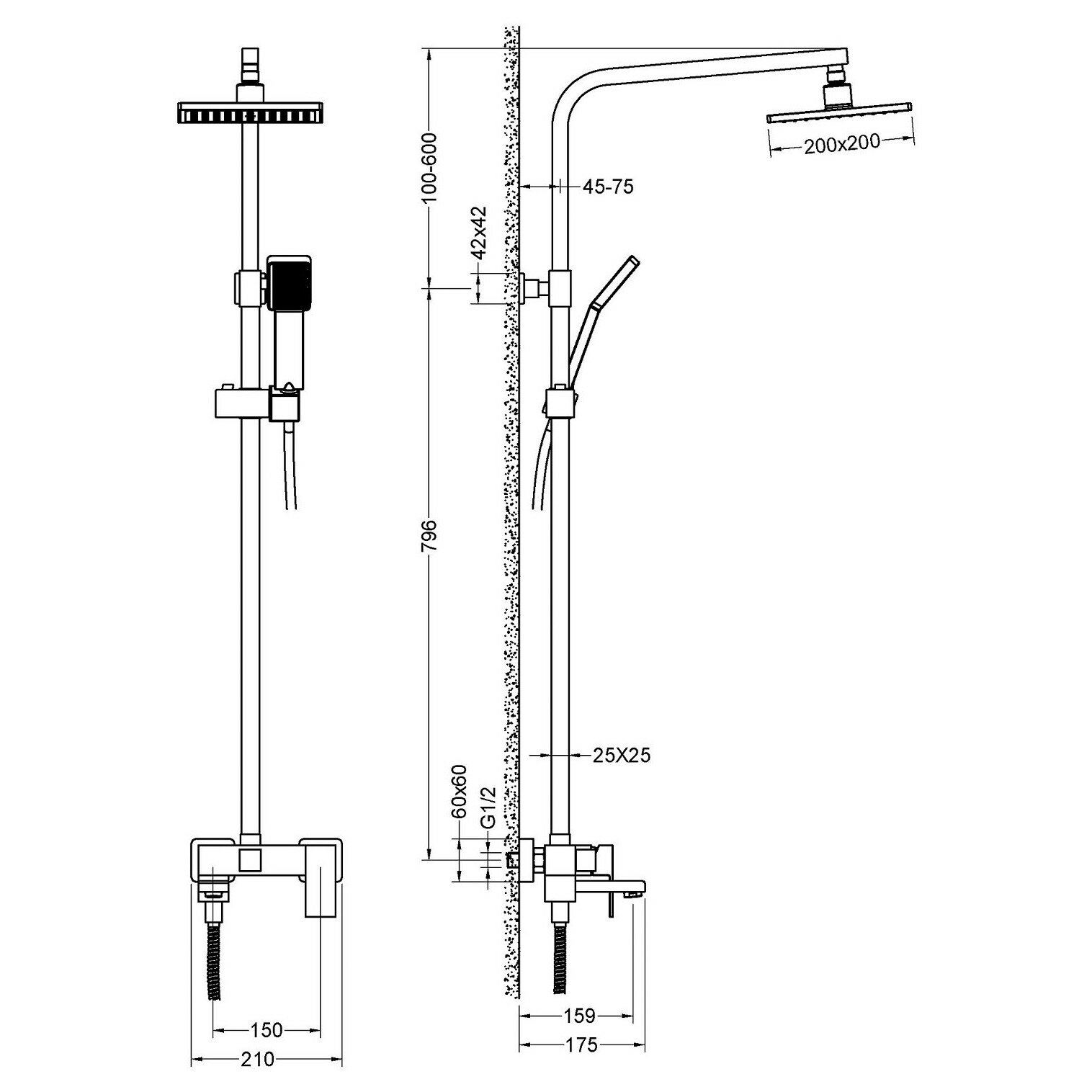 | ВКоробке | Душевая стойка - 1 шт. Верхний душ - 1 шт. Лейка - 1 шт. Шланг - 1 шт. Смеситель - 1 шт. Эксцентрик - 2 шт. Инструкция - 1 шт. |