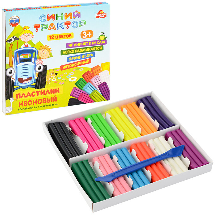 Пластилин неоновый МультиАрт "Синий трактор" 12 цветов Умка (MODCLAY-NEON-12)
