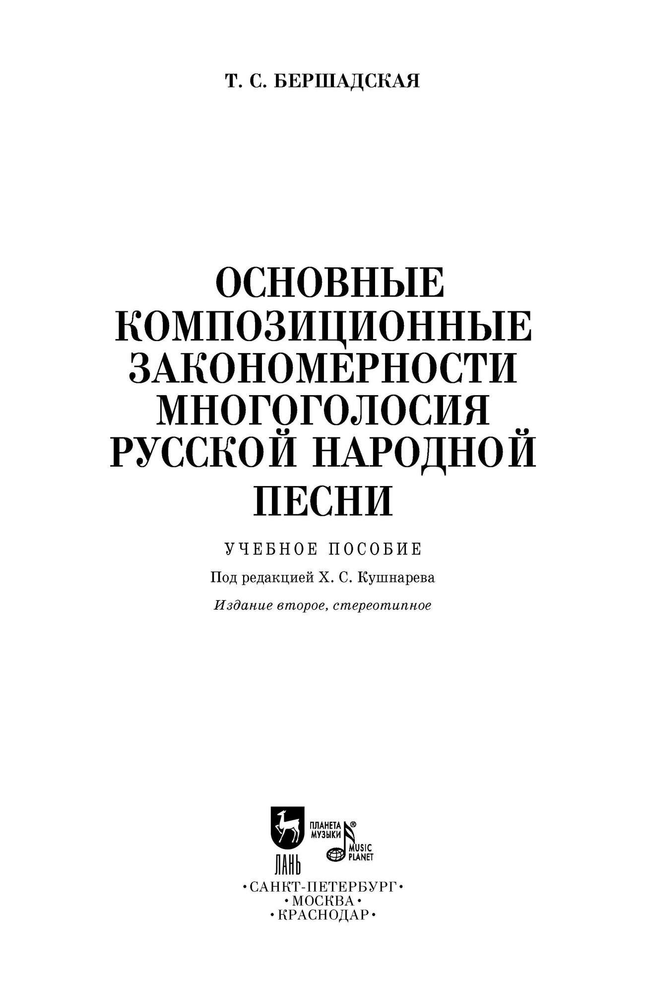 Основные композиционные закономерности многоголосия русской народной песни (Т. С. Бершадская); Издательство «Планета музыки», 2021