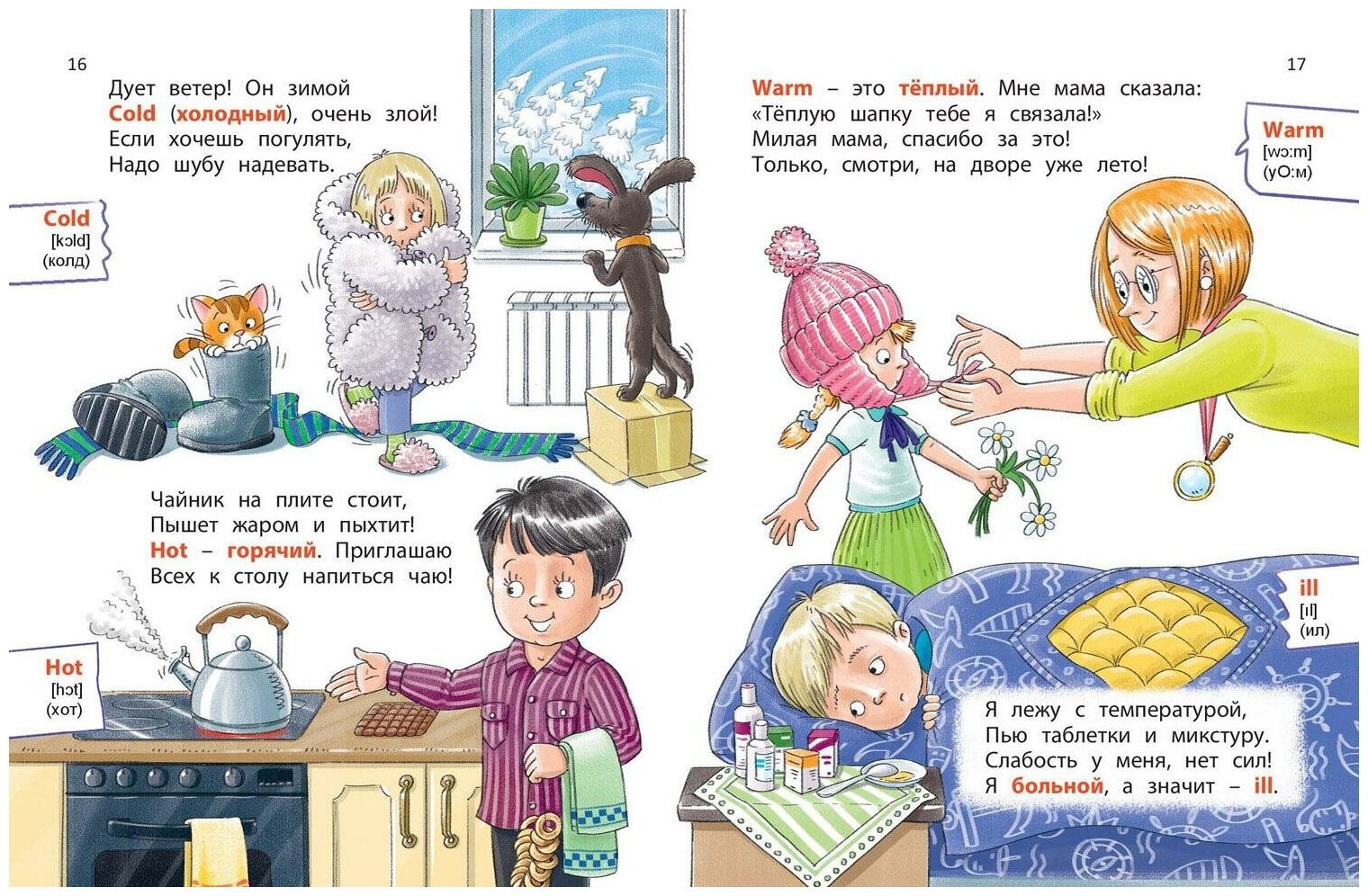 Эта книга - не учебник или методическое пособие по изучению иностранного языка. Она поможет вам легко и в игровой форме познакомить малыша с английскими прилагательными. Под её обложкой - всё, что так любят дети: весёлые стихи и яркие картинки. В помощь родителям для каждого английского слова даны две транскрипции - классическая (написана с помощью международных знаков) и практическая (написана с помощью русских букв, как это принято в разговорниках).