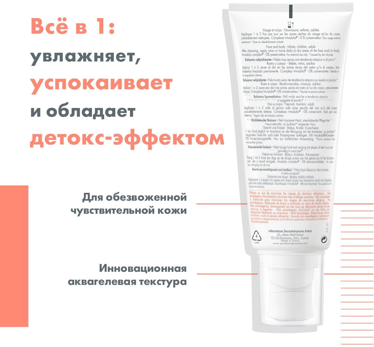Успокаивающий Концентрат использует технологию стерильной косметики, которая гарантирует эффективность и безопасность, обеспечивая защиту кожи и ее микробиом:Только полезные для кожи ингредиенты;Стерильная формула, 0% консервантов;Герметичная, эксклюзивная, защитная форма упаковки. -Modulia complex - инновационный компонент, созданный в результате 12-летних исследований из древней полезной микрофлоры, обнаруженной в Термальной воде Avene: снимает зуд *, стимулирует защитные функции кожи, препятствует раздражению. - Защитно-восстанавливающий комплекс [Cer-omega® + ультраконцентрированное растительное масло]: уменьшает сильную сухость кожи и восстанавливает гидролипидный барьер кожи. - Термальная вода Avene: успокаивает, смягчает, имеет противовоспалительное действие. Результат - мгновенное увлажнение, возвращающее коже оптимальный комфорт.