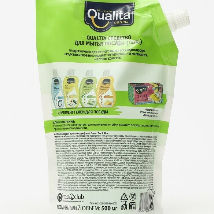 Средство для мытья посуды Qualita Green tea & aloe 500мл