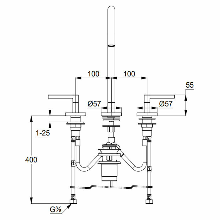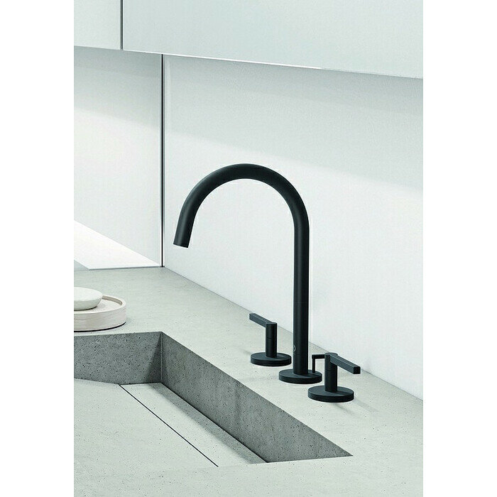 Смеситель для раковины Kludi Nova Fonte Puristic 201433915 двухрычажный с поворотным изливом, на три отверстия.