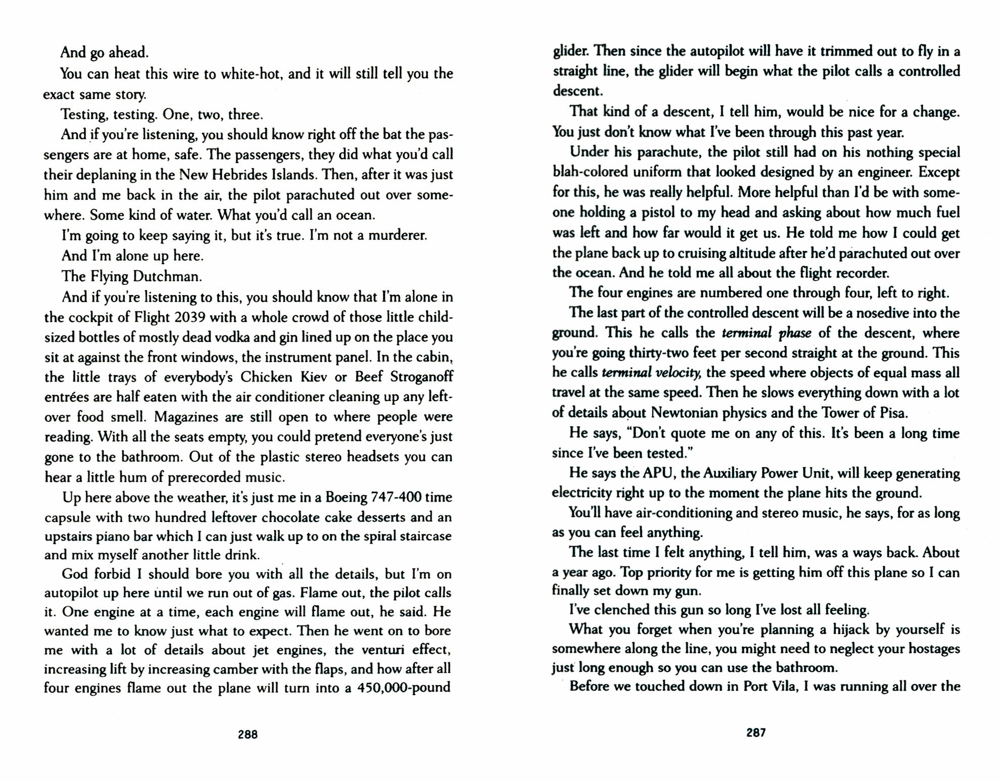 Tender Branson, the last surviving member of the Creedish death cult, has commandeered a Boeing 747, emptied of passengers, in order to tell his story to the plane's black box before it crashes. Brought up by the repressive cult and, like all Creedish younger sons, hired out as a domestic servant, Tender finds himself suddenly famous when his fellow cult members all commit suicide. As media messiah he ascends to the very top of the freak-show heap before finally and apocalyptically spiralling out of control.
