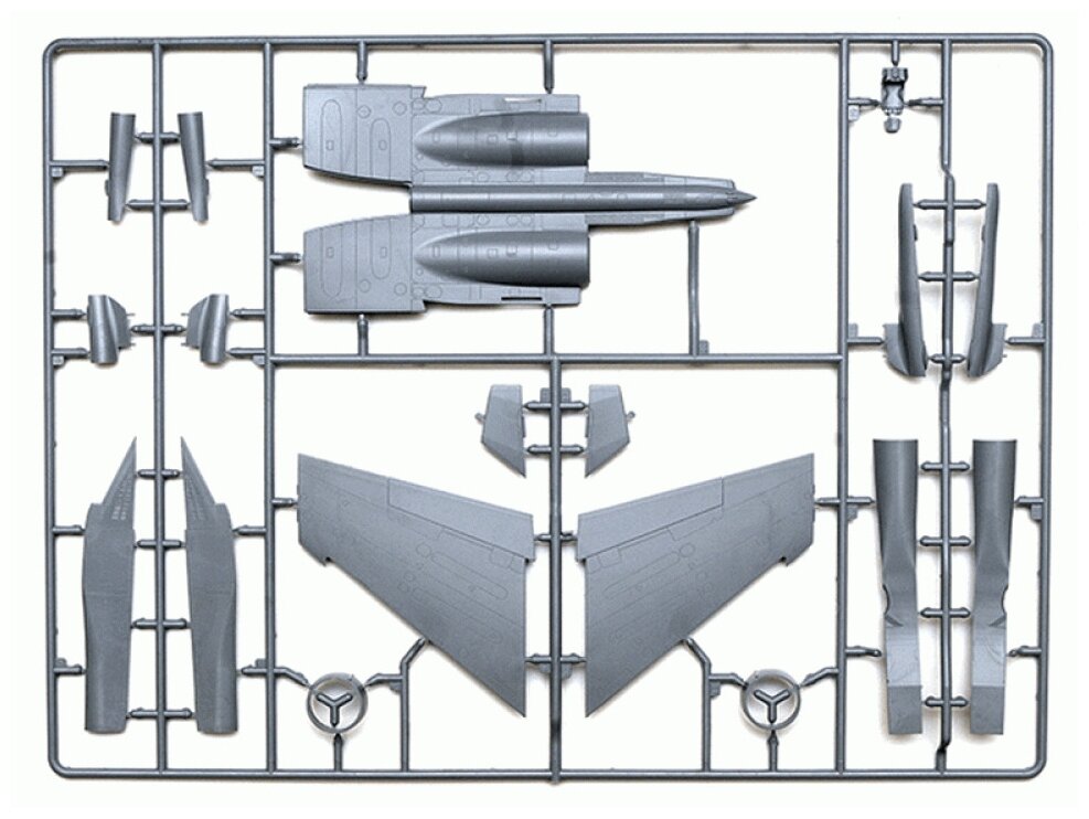 Набор деталей из пластмассы для сборки одной модели самолета.