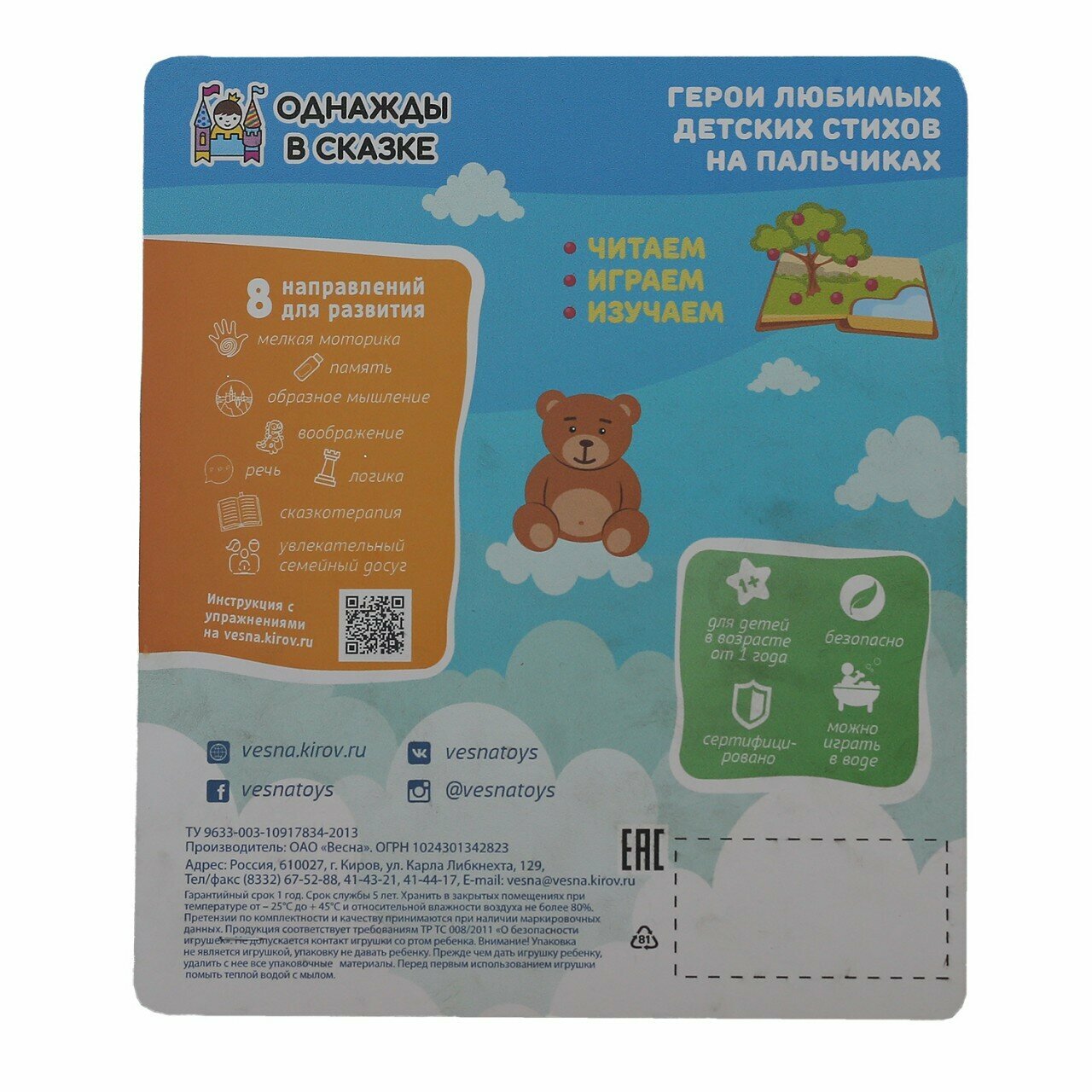 - По QR-коду на упаковке можно скачать инструкцию с развивающими упражнениями.