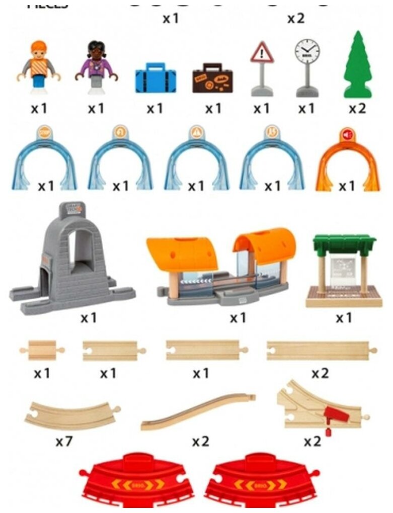 | Комплектация | локомотив - 1 шт, вагон - 2 шт, рельсы, дорожные знаки, человечек - 2 шт, тоннель |