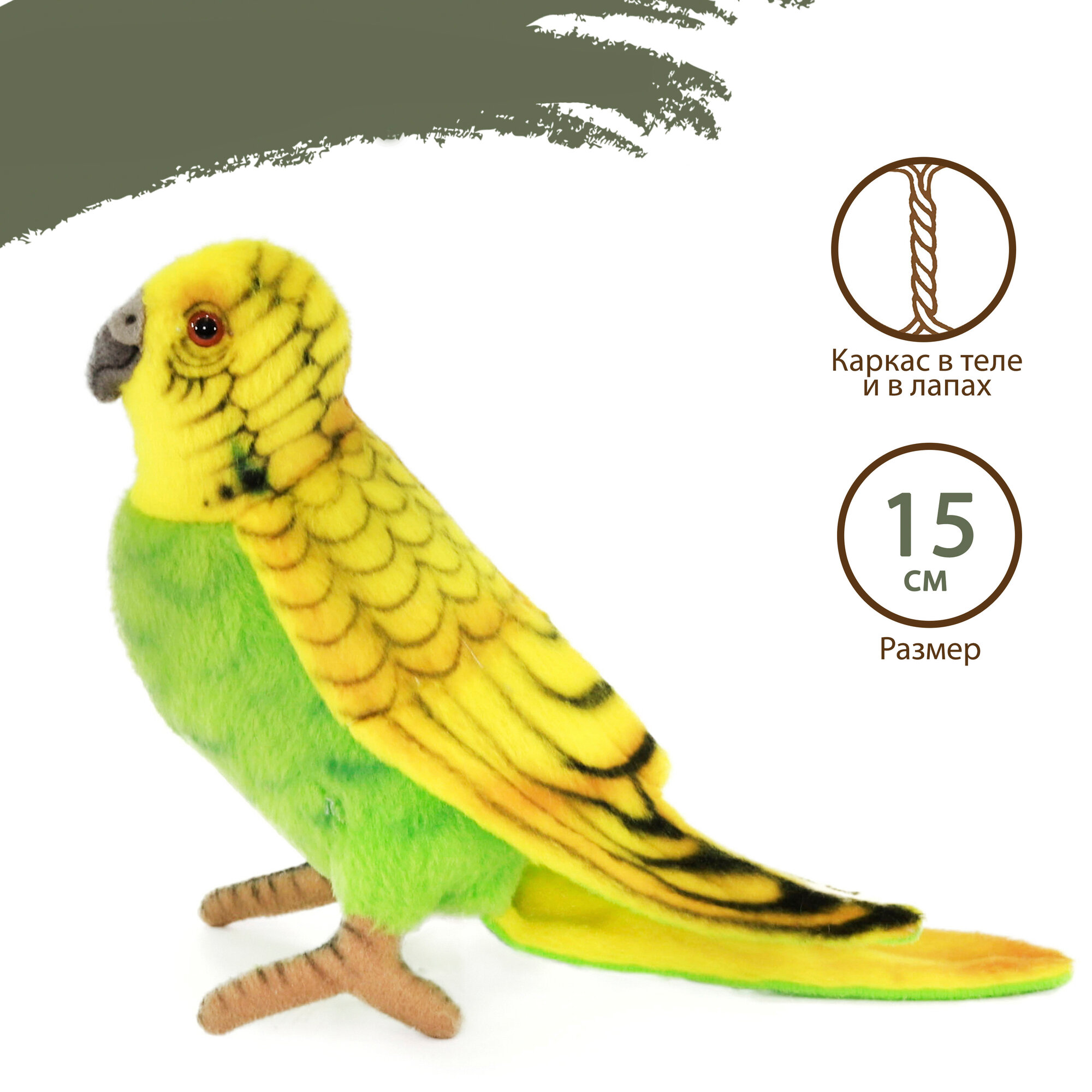 Hansa Creation "Волнистый попугайчик зеленый 15 см - 3653П"- мягкая игрушка (размер: маленькая)