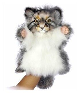 Великолепная мягкая игрушка премиум класса на руку в виде котёнка манула. Все детали мягкой игрушки максимально проработаны, создавая подлинное сходство с настоящим детёнышем манула.