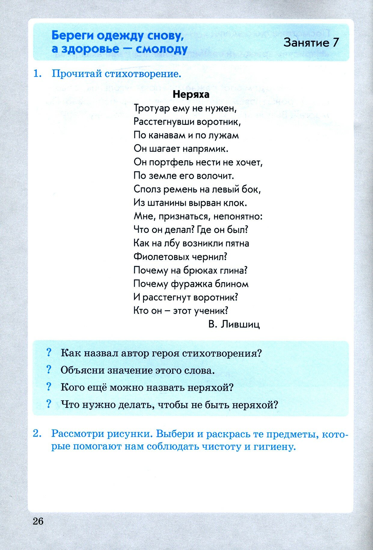 В пособии представлены задания на формирование представлений об основах экологической культуры, о бережном отношении к природе, о правилах личной гигиены, режиме дня, об отдыхе, о правильном питании, о безопасном поведении в окружающей среде, об играх. А также на формирование навыков позитивного общения, осознанного выбора поступков, поведения.