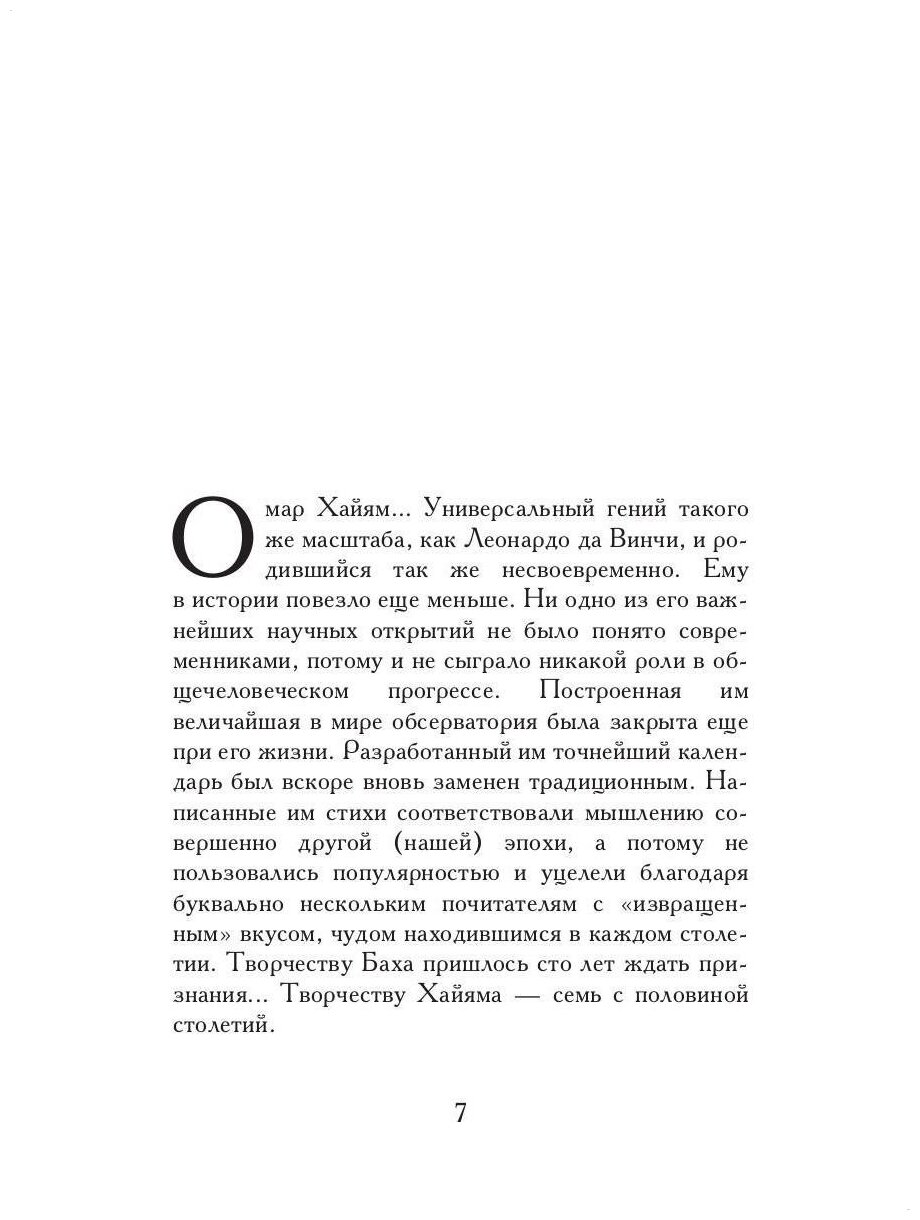 Эта книга уникальна прежде всего принципиально новым взглядом на поэзию Омара Хайяма. В ней развенчивается привычный образ поэта, сложившийся в Европе за полтора столетия, и читателю предлагается открыть Хайяма заново. Уникальна она и другим: никто никогда не переводил его стихи в таком объеме. А также третьим: осуществлением давней мечты востоковедов расшифровать тайное философское учение Хайяма по его четверостишиям.