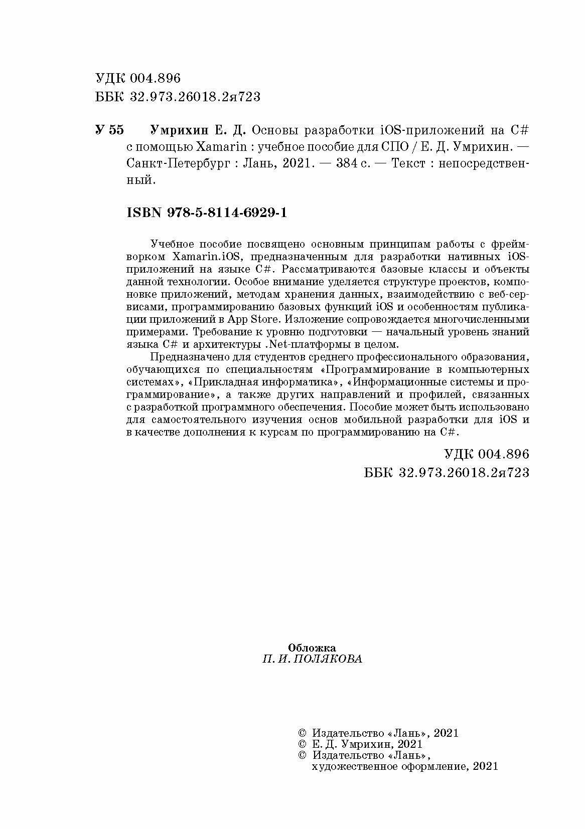 Основы разработки iOS-прил.на C# с пом.Xamarin.СПО (Е. Д. Умрихин); Издательство ЛАНЬ, 2024
