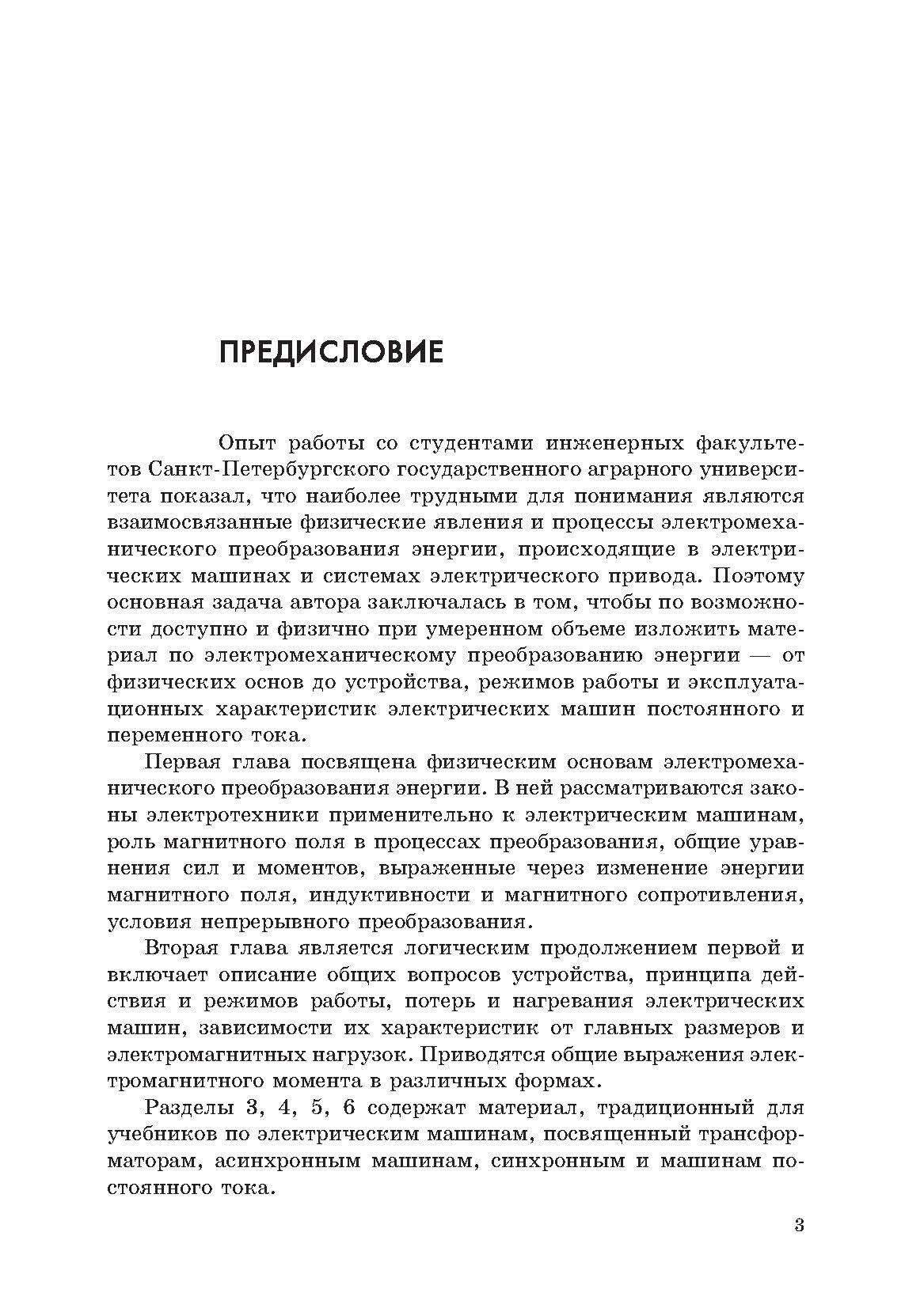Допущено Учебно-методическим объединением вузов по агроинженерному образованию в качестве учебника для студентов высших учебных заведений, обучающихся по специальности 110302 - "Электрификация и автоматизация сельского хозяйства". В книге рассмотрены следующие вопросы: физические основы электромеханического преобразования энергии; общие вопросы устройства и работы электрических машин; трансформаторы; асинхронные машины; син-хронные машины; машины постоянного тока.