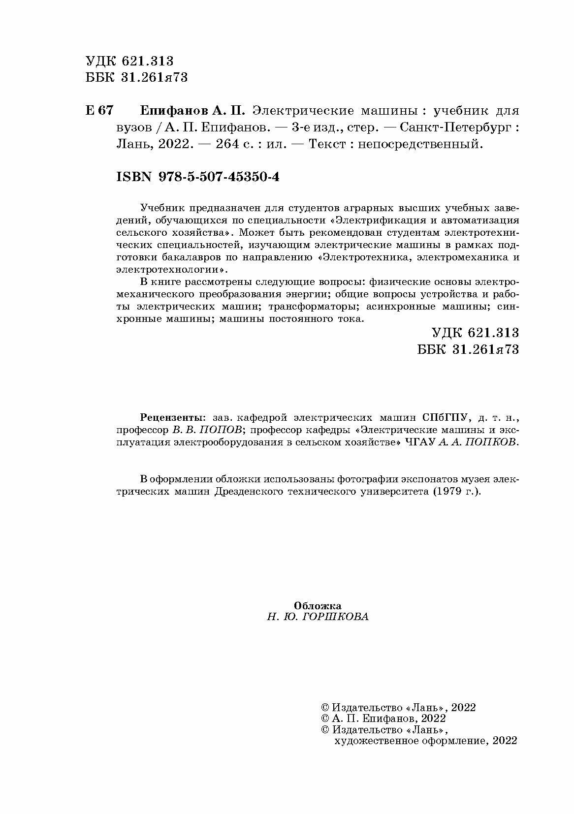 Электрические машины.Уч2изд (Епифанов Алексей Павлович, Епифанов Григорий Алексеевич); Лань, 2021