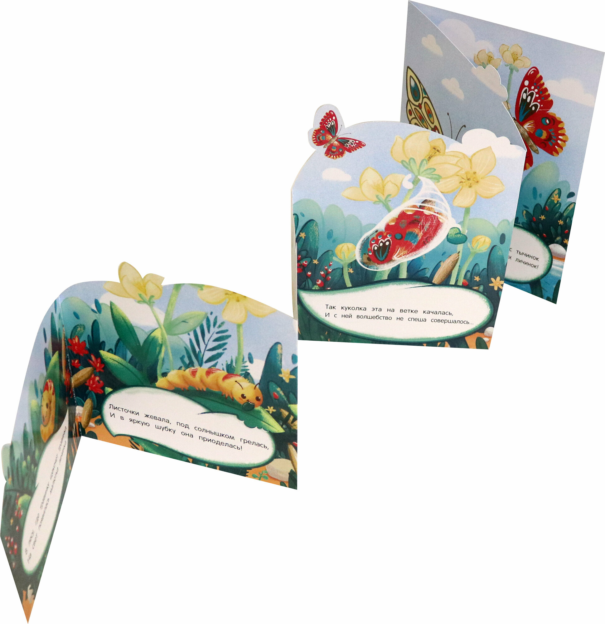 В книжке-гармошке «Бабочка» серии «Как растёт» маленького читателя ждут интересные задания с наклейками, яркие иллюстрации и стихи, которые расскажут о стадиях роста бабочки.