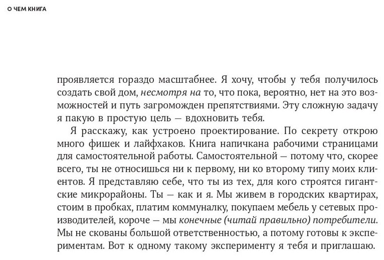 Автор щедро делится профессиональным опытом и отвечает на важные вопросы о роли дома в повседневной жизни человека.