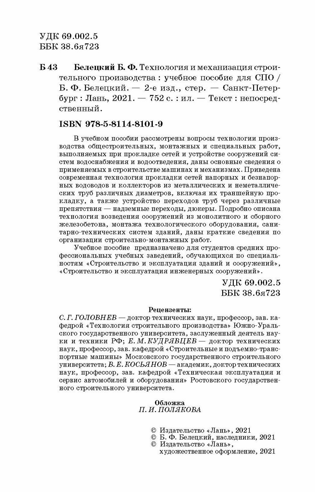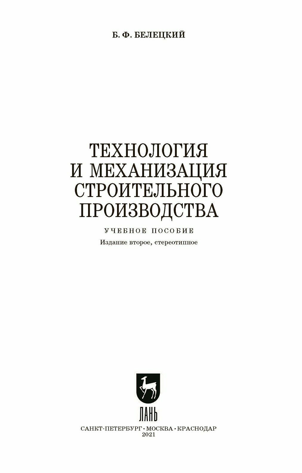 Технология и механизация строительного производства Учебное пособие для СПО (Б. Ф. Белецкий); Издательство ЛАНЬ, 2024