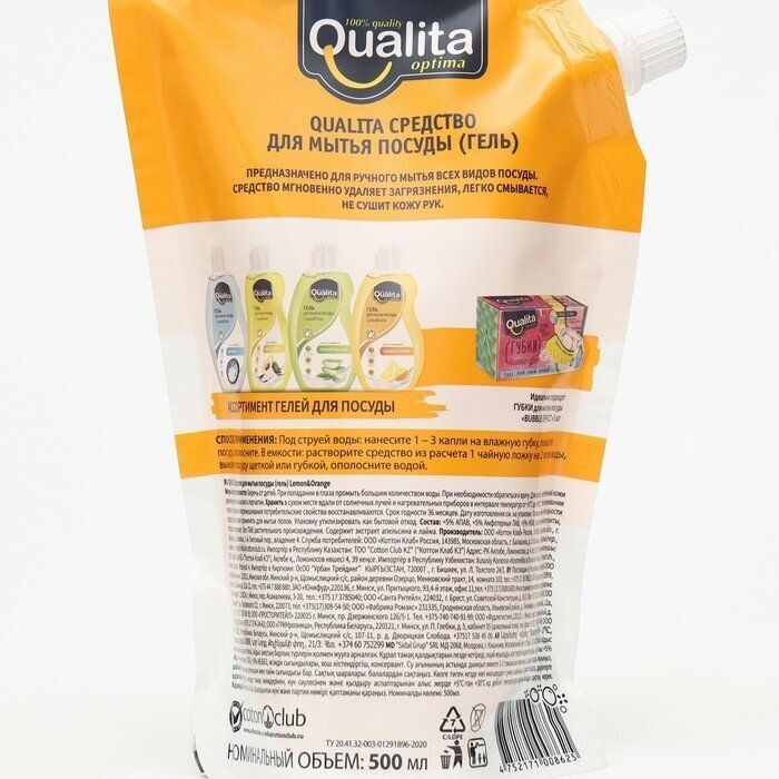 Средство для мытья посуды Qualita Lemon & Orange 500мл