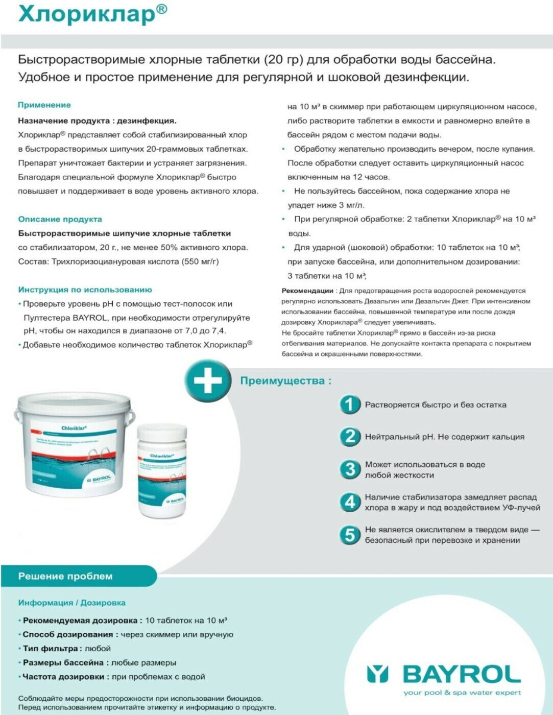 Сервис сравнения цен СкидкаГИД предлагает сравнить цены на товар «Таблетки для бассейна Bayrol Chloriklar 1 л Хлориклар (Chloriklar) быстрорастворимые хлорные таблетки 1 кг»