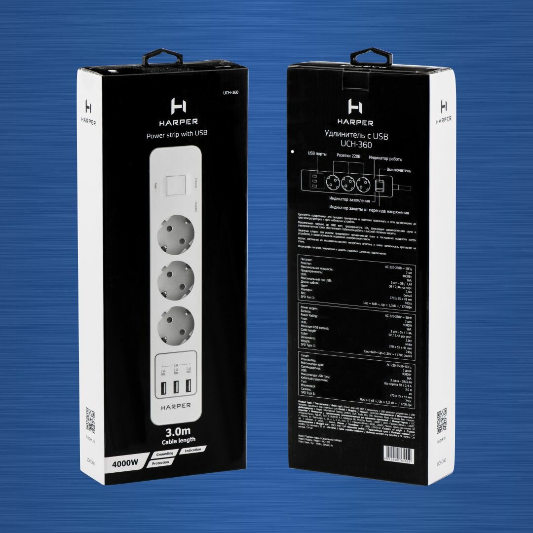 Вам нужен надёжный сетевой фильтр для компьютерной или офисной техники со встроенным зарядным устройством (USB-портами)? Это Harper . Трёхметровый кабель с качественной изоляцией, 3 евро-розетки с заземлением и автоматическими шторками, встроенная защита от скачков напряжения и тока. Кроме того, вы можете наглядно отслеживать статус защиты и работы фильтра (каждый светодиод отвечает за свою функцию). Максимальная мощность нагрузки – до 4 кВт. Мощность зарядного устройства – до 18 Вт совокупно (но не более 12 Вт на 1 порт). Есть удобные пазы для крепления на стену.