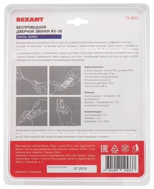 На сегодняшний день товар «Звонок Rexant RX-30 беспров. 25мел. черный (73-0015)» можно купить с кешбеком в 3 магазинах: xcom-shop, Onliner BY, Яндекс.Маркет