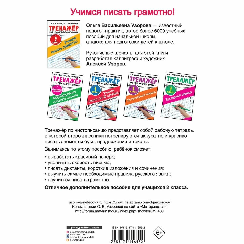 Тренажер по чистописанию. 2 класс. Учимся писать грамотно (Нефедова Елена Алексеевна; Узорова Ольга Васильевна); Сова. Малыш (Обучающая и развивающая литература), 2021