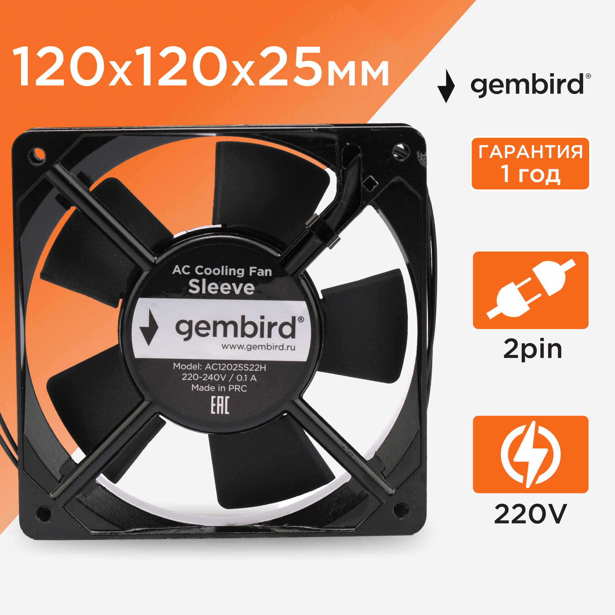 Вентилятор для корпуса Gembird AC12025S22H (размер: 120х120)