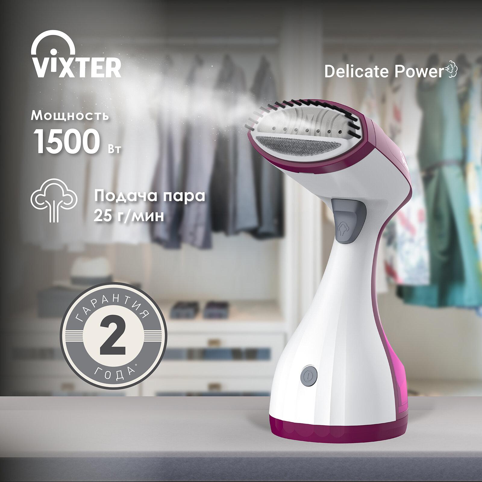 Ручной отпариватель Vixter – это компактный прибор, который поможет вам устранить складки на одежде, не снимая её с вешалки. Благодаря мощности 1500 Вт он в считаные минуты вернёт вашим вещам аккуратный вид.многофункциональныйОтпариватель легко справится с тканями, на которых есть пайетки, бисер или другие декоративные элементы, и не повредит их. Благодаря специальной насадке он подходит для деликатных материалов. Кроме того, с его помощью вы сможете освежить диванную обивку и детские игрушки, избавиться от вредоносных бактерий.практичныйЗа счёт компактных размеров прибор можно брать с собой в поездку и использовать в качестве альтернативы утюгу. Эргономичная рукоятка удобно лежит в ладони и обеспечивает комфорт во время использования отпаривателя. Функция автоматического отключения без воды предотвращает случайное повреждение устройства.