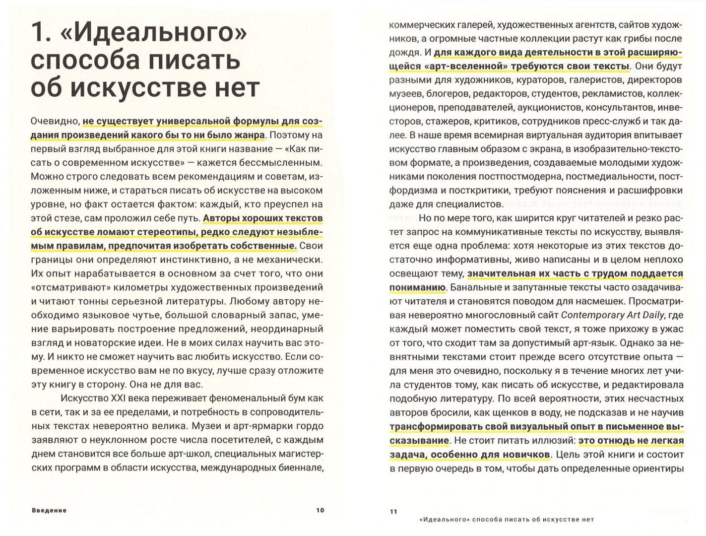 По долгу работы много пишу про современное искусство. Хотелось актуализировать свои знания и проработать модели написания материалов на основе зарубежного опыта. Отличный перевод издания, качество на высоте. Верстка книги и выделение главного в тексте разбили мне сердце. Монолитный, но при этом крайне интересный материал, который будет полезен искусствоведам, журналистам и художникам, работающим в теме современного искусства. Книга серьезно расширяет кругозор в данной теме.