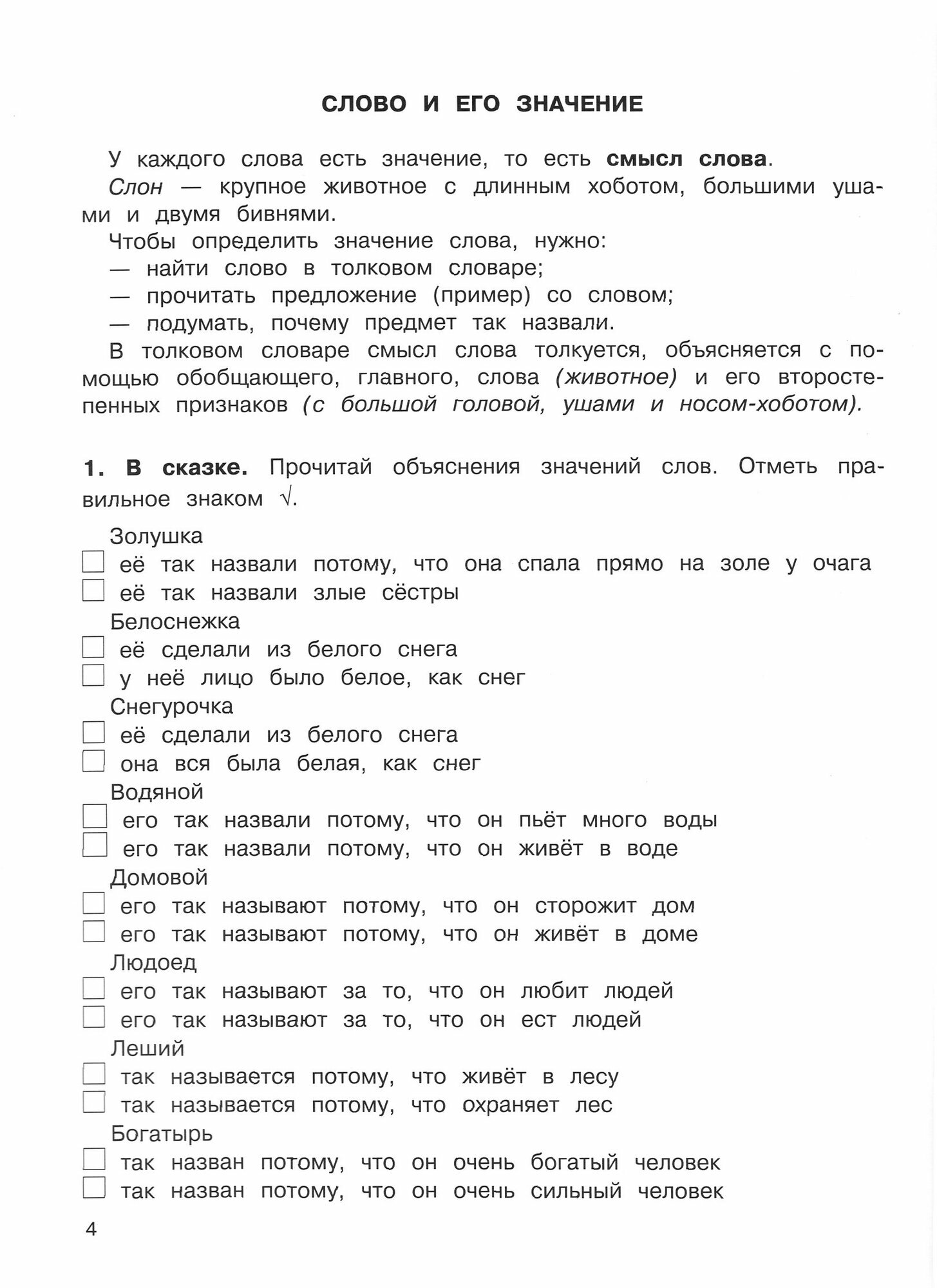 Пособие ориентировано на действующие программы и ФГОС второго поколения и включает все разделы лексики: слово и его значение, слова с переносными значениями, синонимы, антонимы, фразеологизмы и другие единицы лексики. Материалом упражнений служат любимые детьми книги: сказки, загадки, поговорки и авторские стихи.