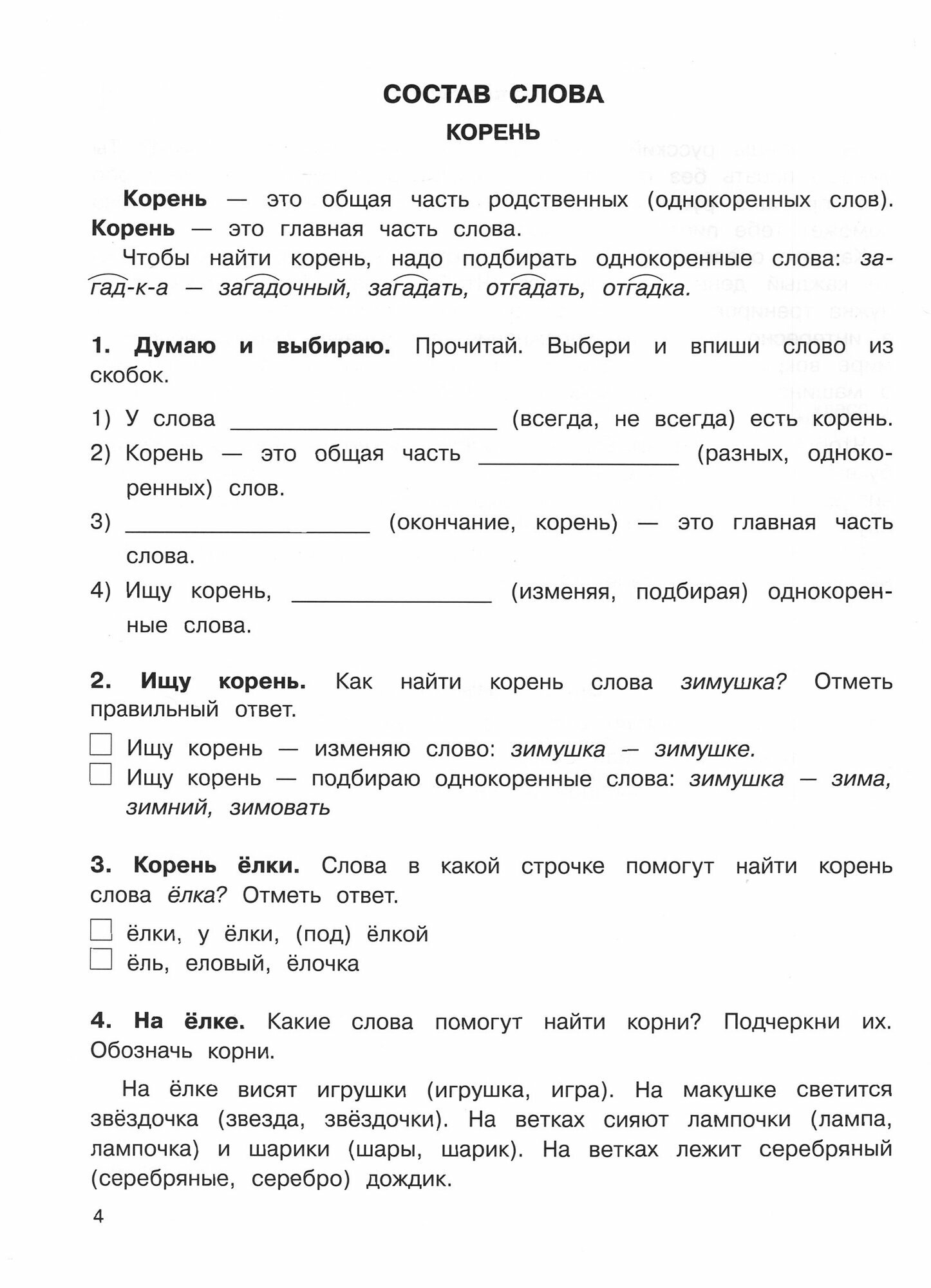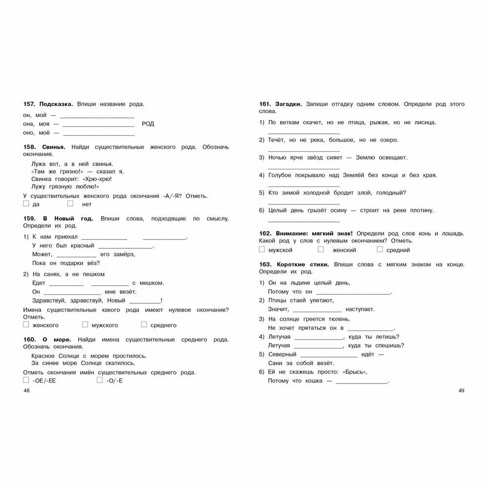 В пособии представлены задания на все разделы грамматики, которые изучаются в начальной школе. Эти разделы включены во все действующие программы по русскому языку и составляют содержание обязательного минимума грамматических понятий для всех учащихся начальных классов школы. Материал подобран с учётом интересов младших школьников: сказки, детские книги, авторские стихотворения, тексты о животных, растениях, технике, изобретениях, что позволяет сформировать у ребёнка интерес к изучению родного языка. Особенностью данного пособия является его ориентированность на самостоятельную работу школьника.