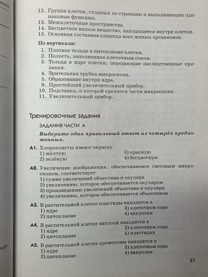Биология 5 кл § 7 Строение клетки (Автор В.В.Пасечник)