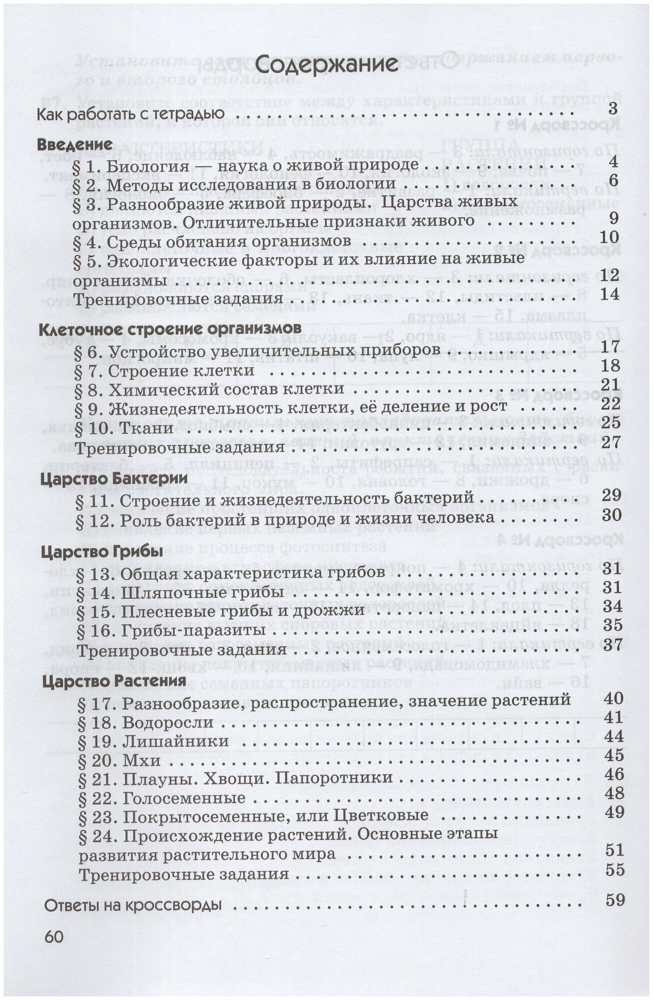Тетрадь является приложением к учебнику В.В. Пасечника «Биология. Бактерии, грибы, растения. 5 класс». Учебник соответствует Федеральному государственному образовательному стандарту основного общего образования. Помимо тетради в состав УМК входят электронное приложение, методическое пособие и рабочая программа. Бесплатный доступ к электронному приложению и рабочей программе можно получить на сайте издательства. Тетрадь содержит различные репродуктивные и творческие вопросы и задания, в том числе в виде лабораторных работ, познавательных задач, таблиц, схем, рисунков и терминологических кроссвордов. В тетрадь включены также тестовые задания, которые помогут ученикам подготовиться к успешной сдаче ЕГЭ и ГИА. Специальными знаками отмечены задания, направленные на формирование метапредметных умений (планировать деятельность, выделять различные признаки, сравнивать, классифицировать и др.) и личностных качеств учеников.