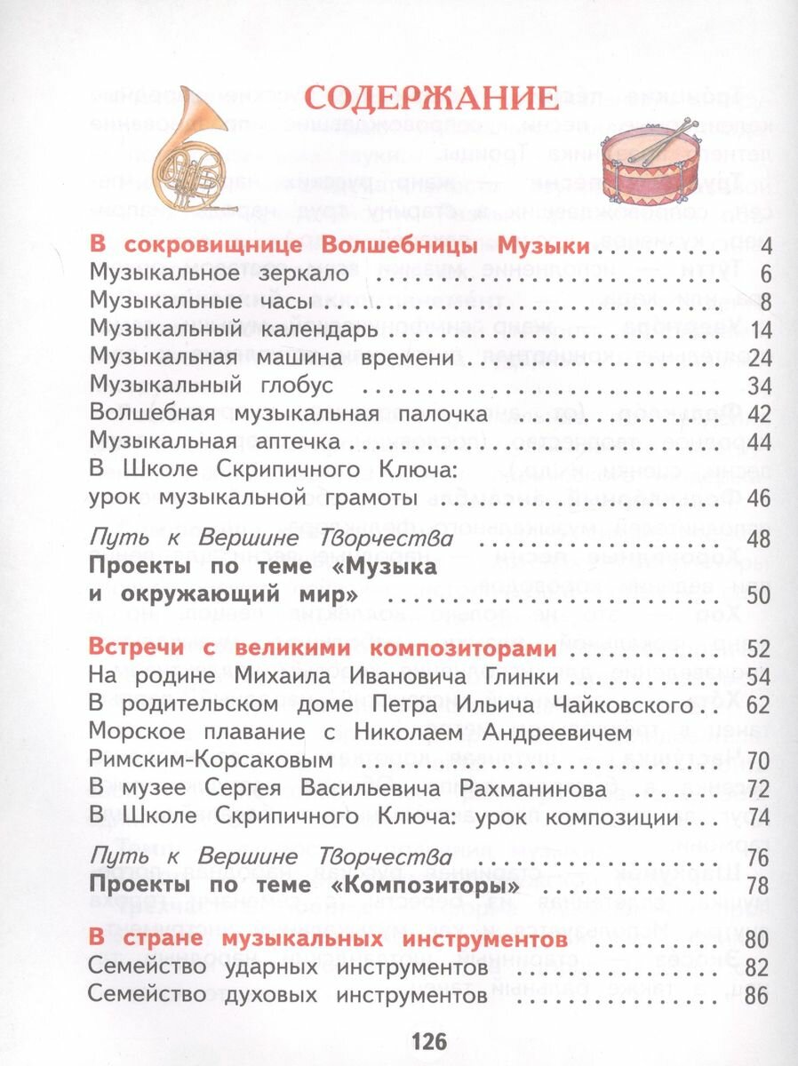 Материал в учебнике представлен в форме путешествия по Музыкальному миру. Учащиеся знакомятся с основными понятиями музыки, а также лучшими произведениями классической, народной и популярной музыки. В комплекте с учебником издаются рабочая программа, электронная форма учебника, рабочая тетрадь и методическое пособие.