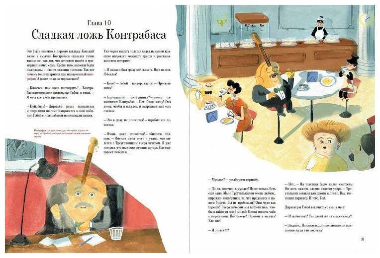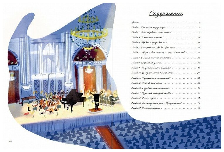 Ребенок проявляет большой интерес к музыке и собирается стать великим дирижером? Тогда ему точно надо познакомиться с книгой “Слава Музыкалкин и пропавший Треугольник”. Это увлекательный детектив для детей от семи лет, в котором читатели найдут и напряженную интригу, и целую музыкальную энциклопедию!Книга начинается с пропажи самого важного участника оркестра Славы Музыкалкина - Треугольника. За дело берется детектив Гобой - ему нужно опросить всех музыкантов и обязательно найти Треугольника до начала концерта. А пока Гобой проводит расследование, автор Евгения Русинова расскажет вам все об оркестре и музыкальных инструментах. Вы узнаете, что такое пюпитр, посмотрите на гримерную комнату и выясните, чем же первая скрипка отличается от всех остальных. На каждого участника расследования главный герой составит досье, из которого можно будет узнать поподробнее о любимом музыкальном инструменте - даже его вес и размер!Действие разворачивается в Санкт-Петербурге, так что читатели смогут еще и насладиться атмосферными иллюстрациями: посмотреть на интерьеры Петербургской филармонии и даже побывать за кулисами концертного зала!